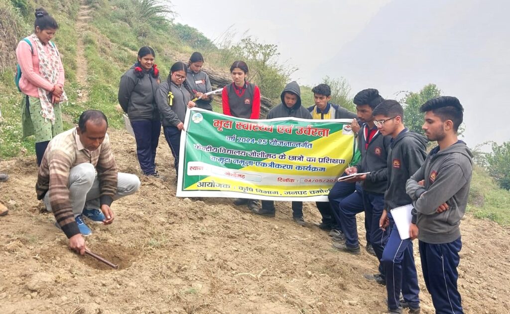 Practical information on soil sample collection was also given to the students by taking them on a field visit. Chief Agriculture Officer VP Maurya said that two Kendriya Vidyalayas of district Chamoli were selected to provide information on soil testing for Kharif crops, in which, the information on soil health and fertility have been given to the students in Kendriya Vidyalaya(center school ) Joshimath.
